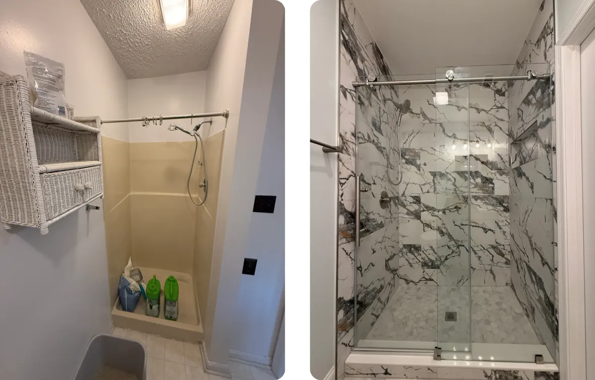 We handle everything: vanity, tile, tub, plumbing, cleanup. Flat-rate pricing means no surprise bills. Your remodel is scoped, scheduled, and finished by pros with full transparency — no long delays, no surprise bills.